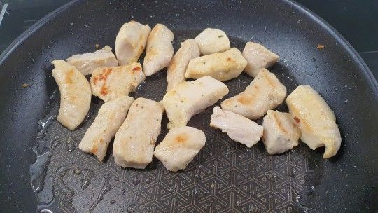 Smażyć (na sucho lub na odrobinie oleju) aż nie będzie surowe - krótko