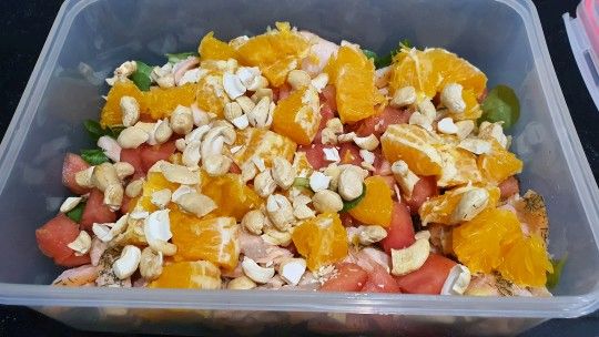 To świetna sałatka na każdą okazję. Niestety nie przepadam za sałatkami, ponieważ jak jakiś rodzaj jedzenia dotknie drugi to smaki się wymieszają i wszystko jest gorzkie i niedobre. Z tego powodu nie smakuje mi, ale każdy składnik z osobna uwielbiam. Cała sałatka waży około 780g.