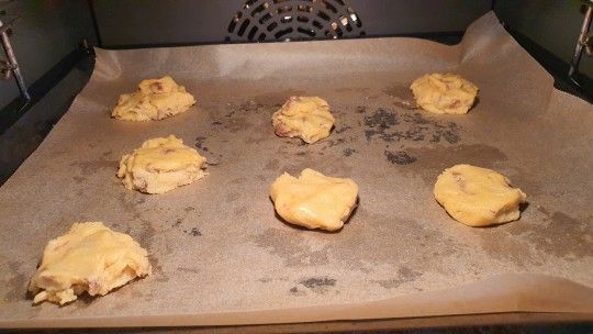 Wstawić do nagrzanego piekarnika do 160°C i piec przez około 14-15 min, aż brzegi ciastek zaczną się rumienić