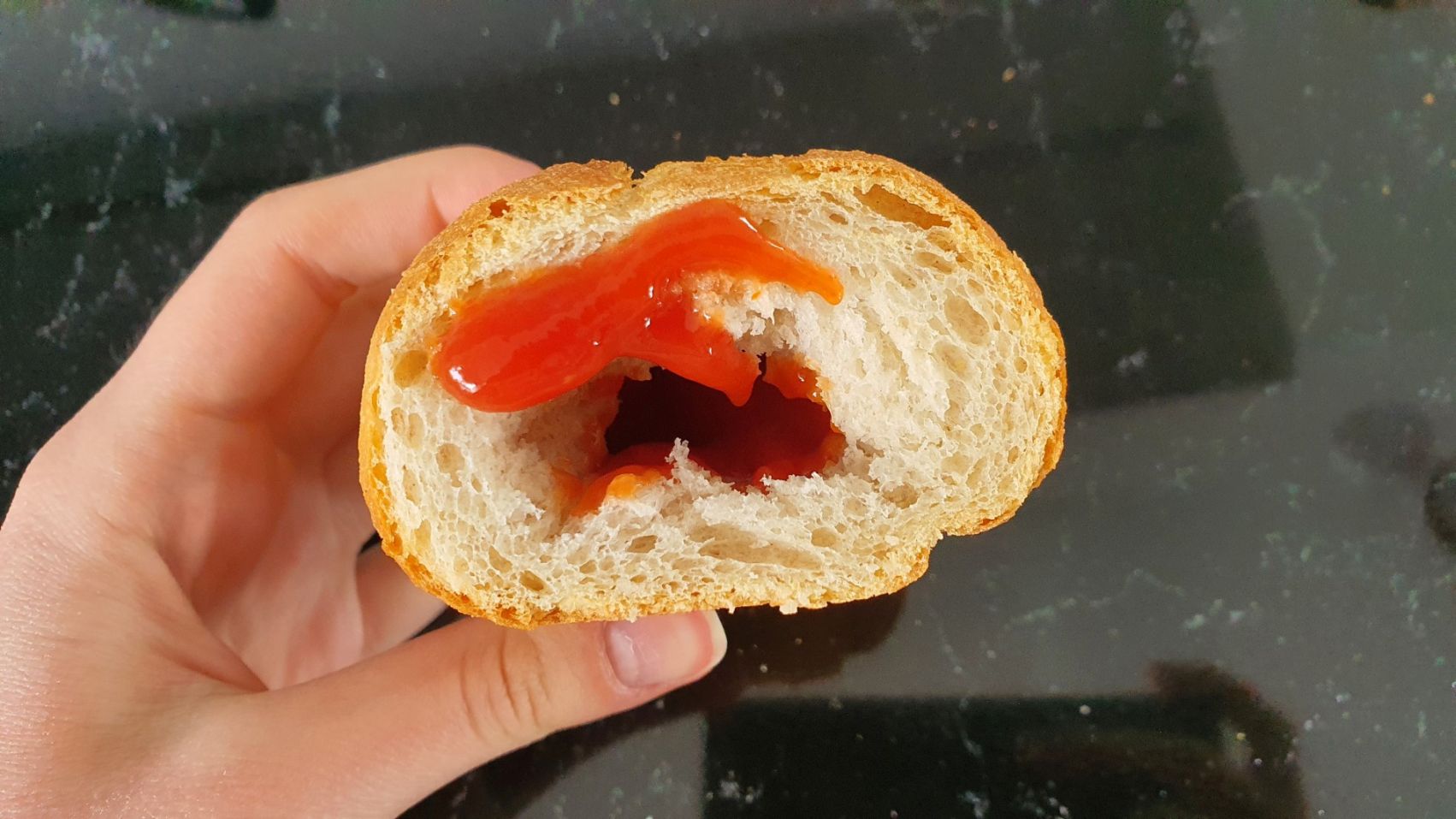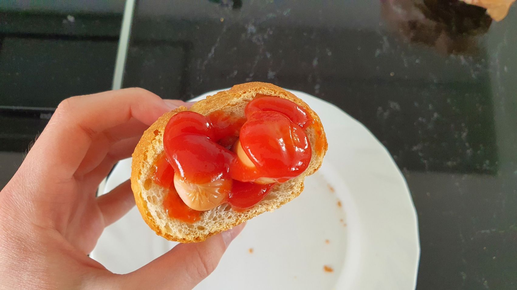 - 1 bułka poranna z Biedronki (65g), ale może być też inna