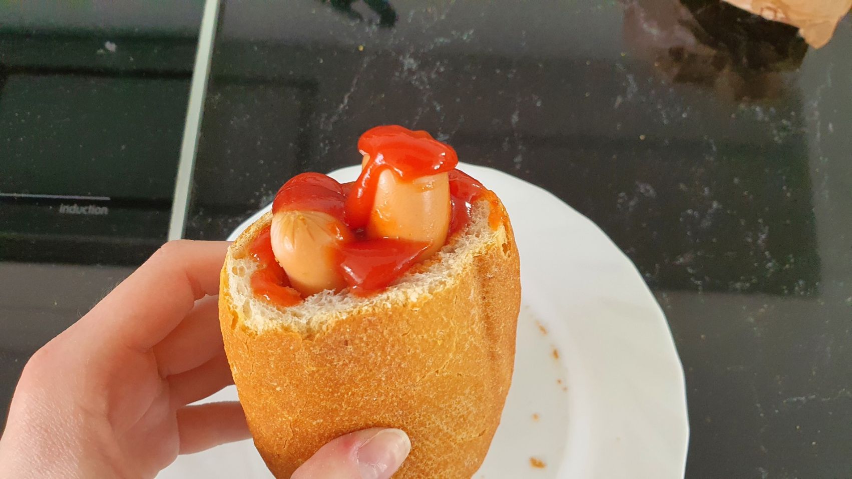 To przepis na najlepszego Hot Doga jakiego kiedykolwiek jadłam. Jest zdecydowanie lepszy od tych ze stacji benzynowych. I ma na dodatek prawie o połowę mniej kalorii! To świetny pomysł na śniadanie, przekąskę, obiad lub kolację. Żeby był zdrowszy można zamiast podgrzewać parówki w mikrofalówce, ugotować w wodzie lub na parze.