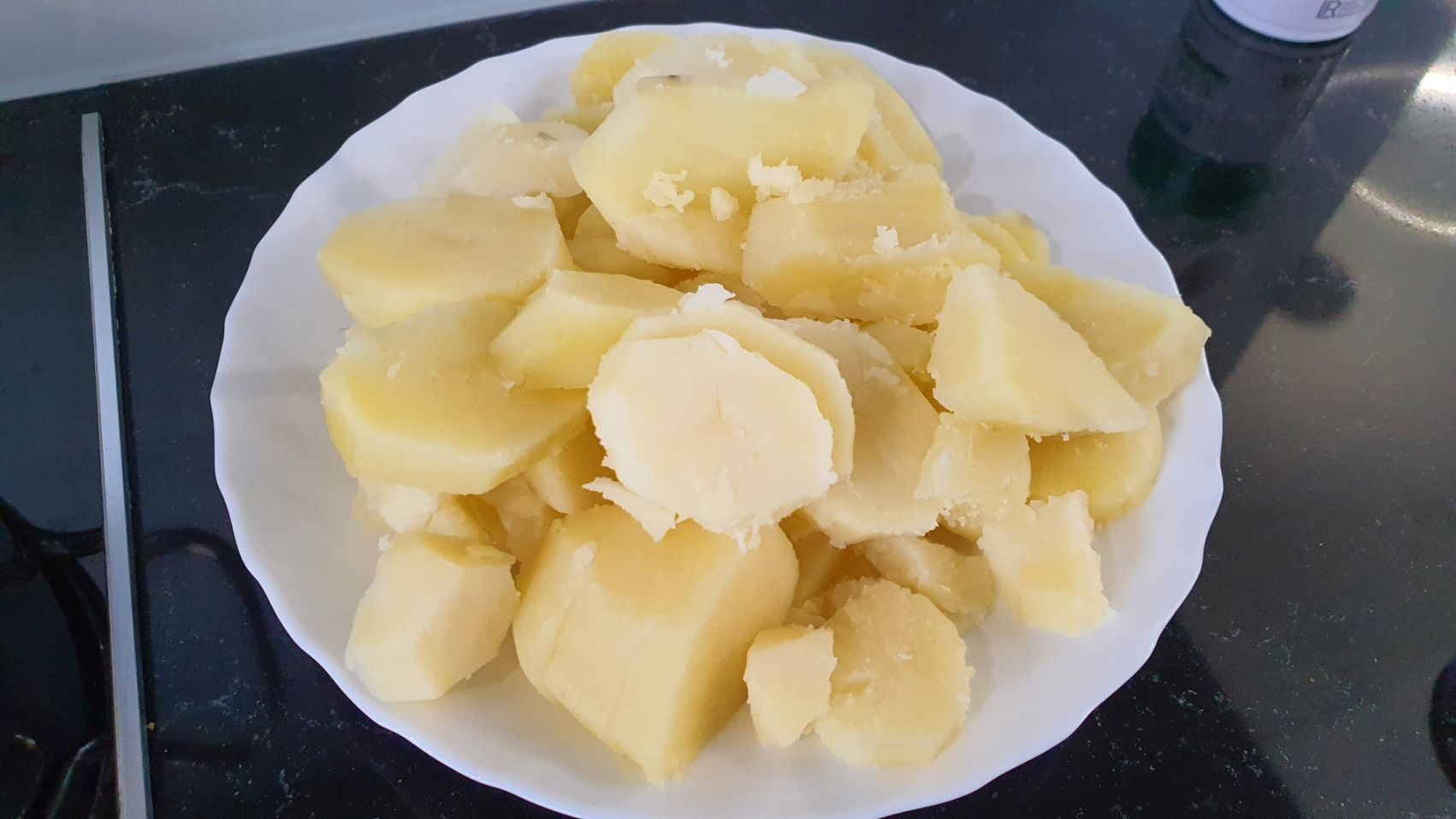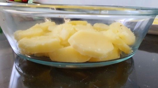 Pokroić ziemniaki w cienkie plasterki (ja zrobiłam za grube)