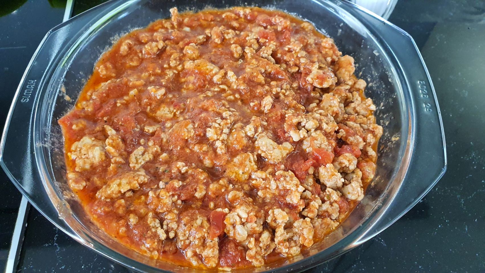 Wylać na to sos z mięsem