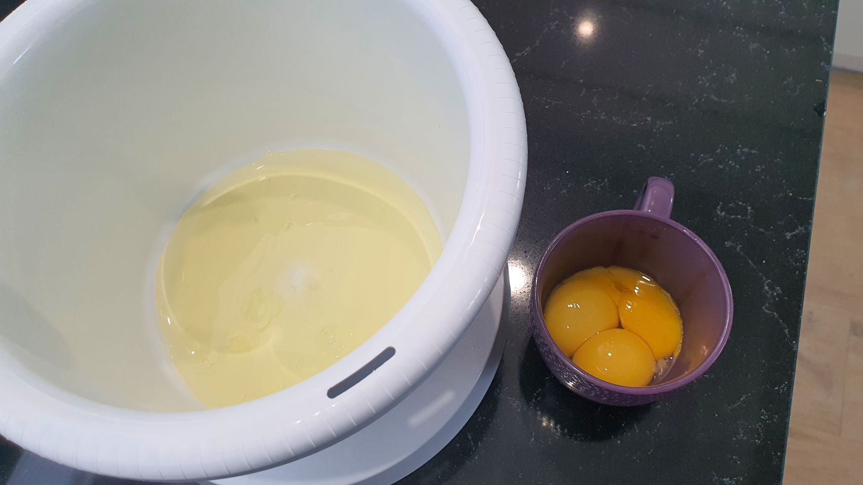 Oddzielić białka od żółtek i umieścić je w osobnych naczyniach (białka w misce, a żółtka np. w kubku)