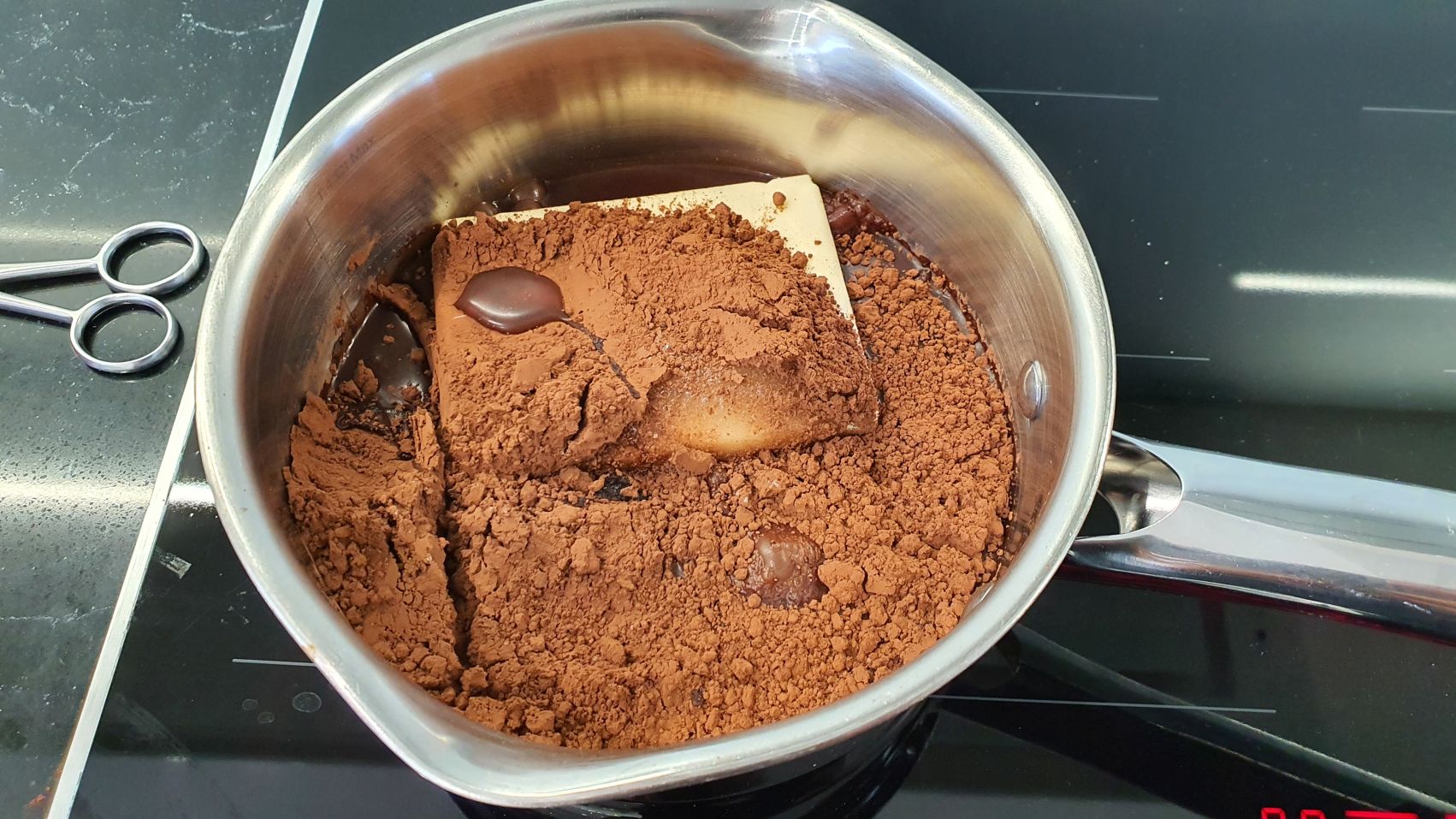 Do garnka lub rondelka dodać masło, cukier, wodę i kakao